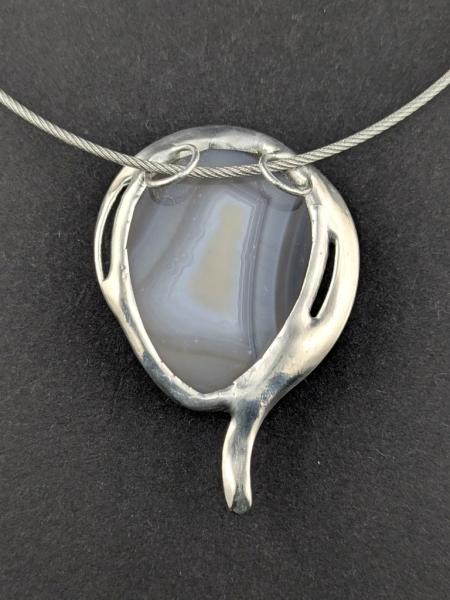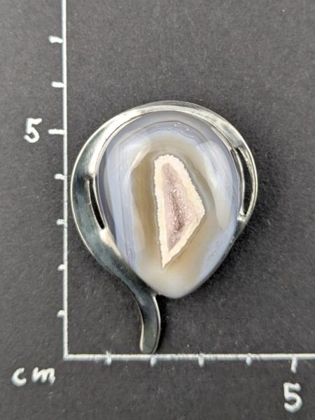 - Die Achatdruse ist in Zinn gefasst.
