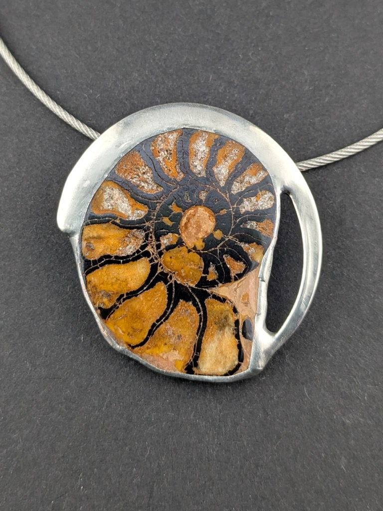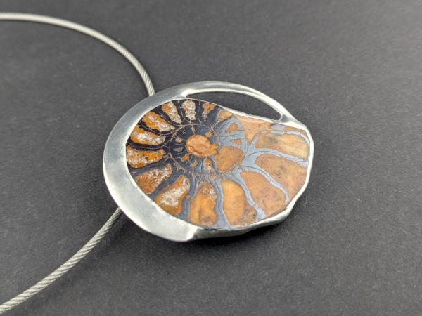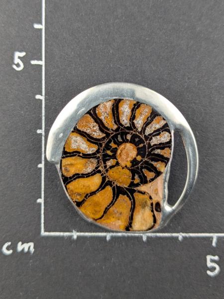 - Größe des Ammonit BxHxL: ca. 2,8 cm x 0,5 cm x 3,7 cm.