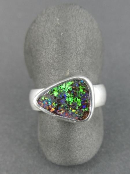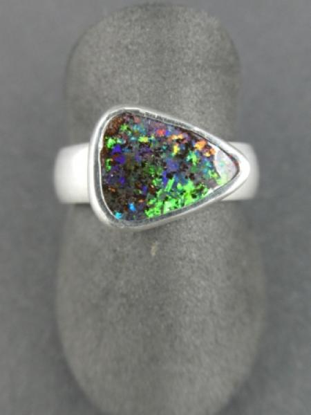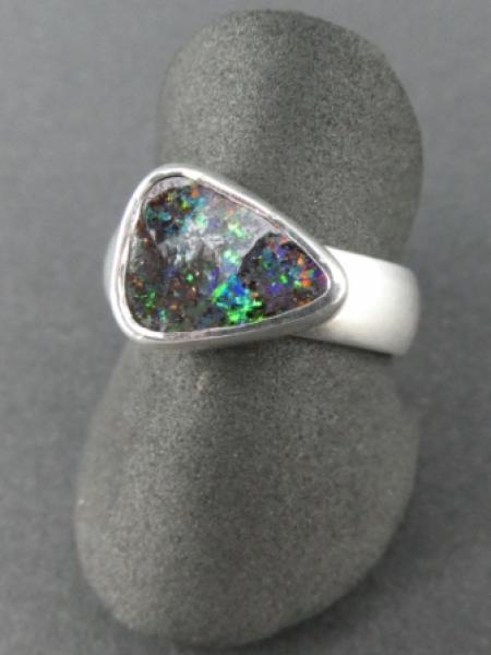 Boulder Opal Ring aus 925er Sterlingsilber, die Fassung des Opal ist aus 999er Silber.