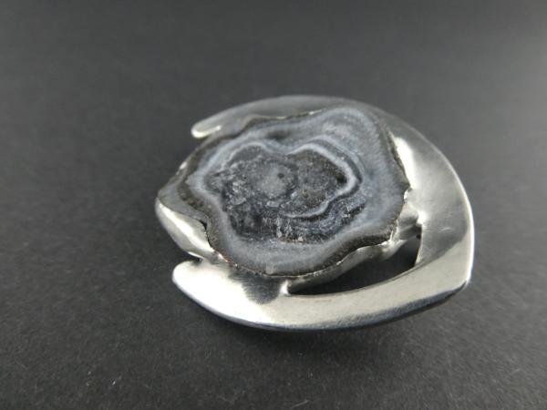 Die Chalcedonrose ist in Zinn gefasst.