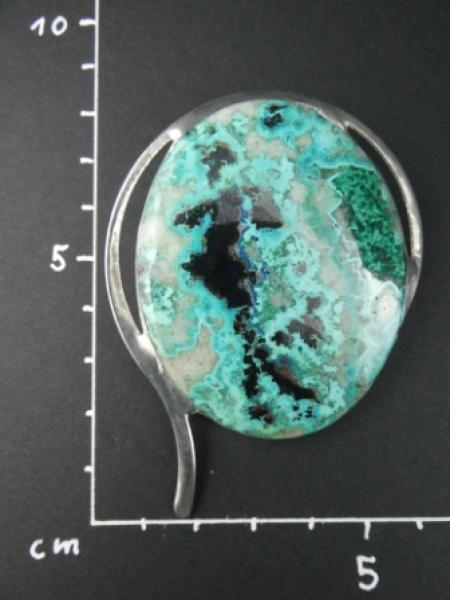- Der Stein ist in Zinn gefasst.