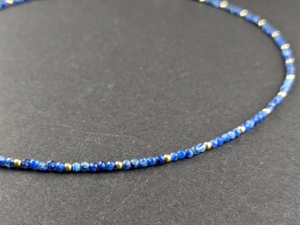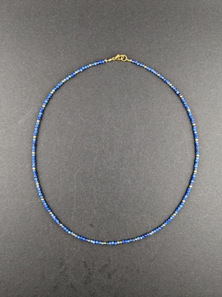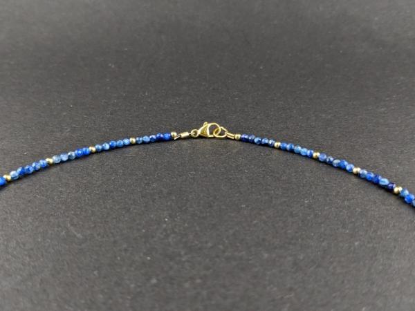 Kyanit Perlen facettiert geschliffen, ca. Ø 2 mm mit 925er Sterlingsilber Perlen vergoldet ca. Ø 2 mm.