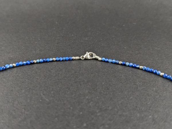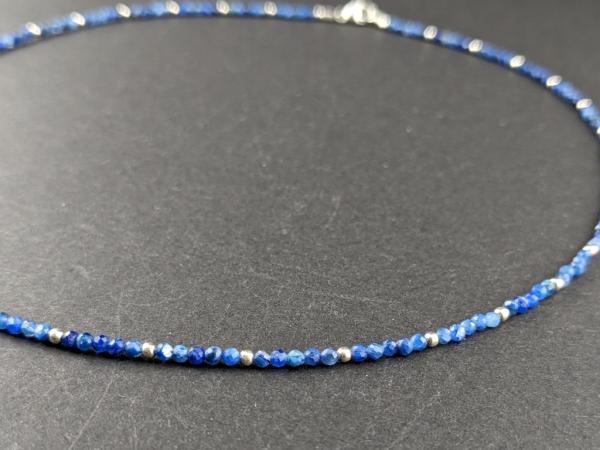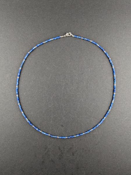 Kyanit Perlen facettiert geschliffen, ca. Ø 2 mm mit 925er Sterlingsilber Perlen ca. Ø 2 mm.