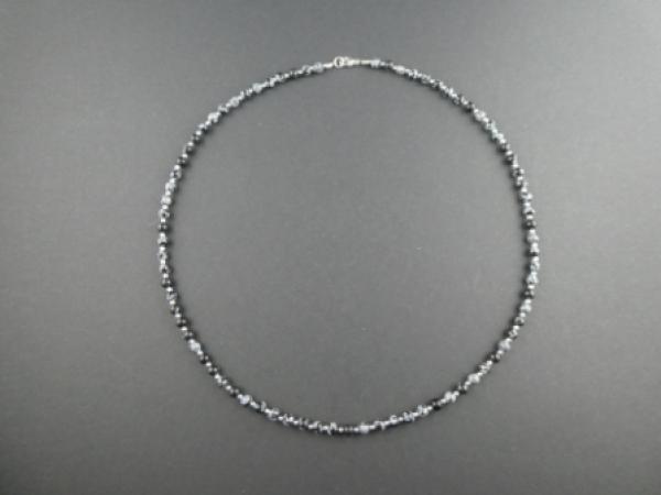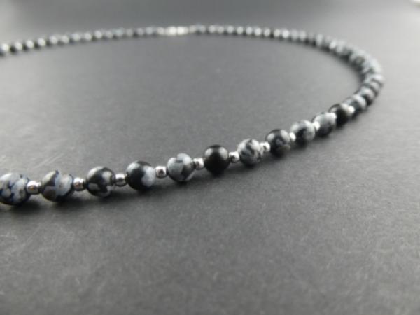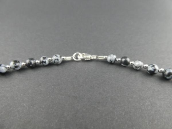 Schneefolckenobsidian Perlen, ca. Ø 4,5 mm mit 925er Sterlingsilber Perlen ca. Ø 2 mm.