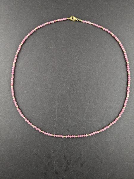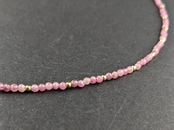 Rosa Turmalin Perlen facettiert geschliffen, ca. Ø 2 mm mit 925er Sterlingsilber Perlen vergoldet ca. Ø 2 mm.