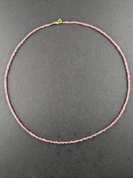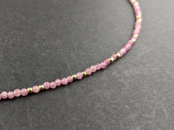 Rosa Turmalin Perlen facettiert geschliffen, ca. Ø 2 mm mit 925er Sterlingsilber Perlen vergoldet ca. Ø 2 mm.